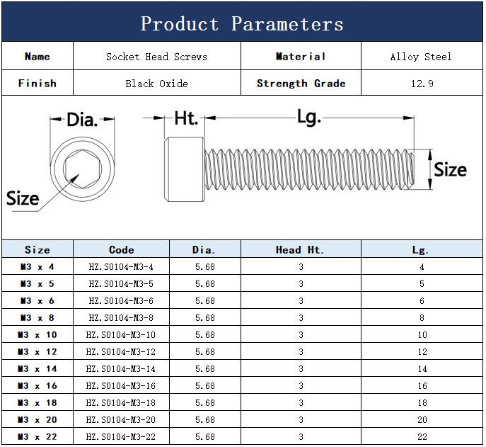 Grade 12.9 M3 Alloy Steel Socket Head Screws