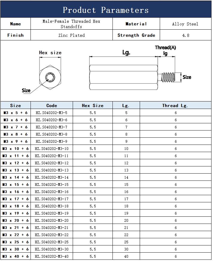 • NameMale-Female Threaded Hex Standoffs