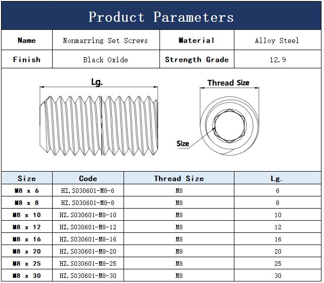 Name Nonmarring Set Screws Material Alloy Steel Size M8 Finish Black-Oxide Strength Grade Grade12.9
