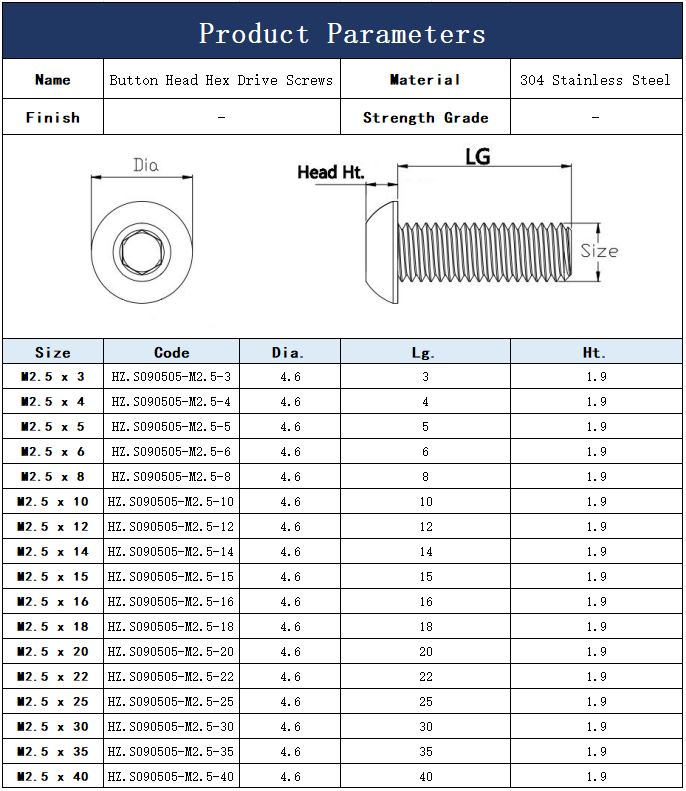 M2.5 304 Stainless Steel Button Head Torx Screws