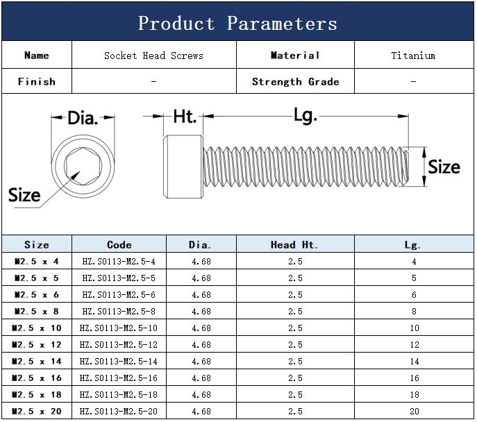 M2.5 Titanium Socket Head Screws