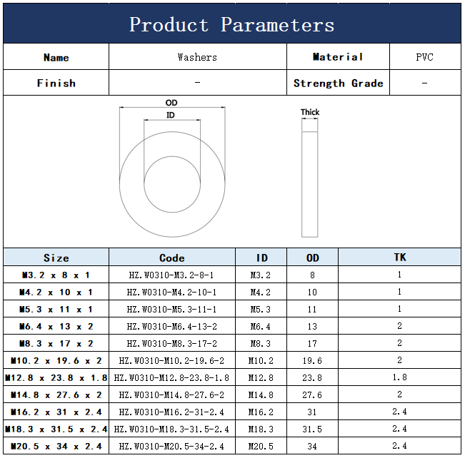 M3.2-M20.5 PVC Washers 分类: General Purpose Washers, Washers Description Product Inquiry NameGeneral Purpose WashersMaterialPVCSizeM3.2-M20.5"" 1 NameEmailProductQuantityYour Message0 / SendPreviousNextShare This Tweet Share Plus one Share 相关产品 M3-M20 Grade4.8 Blue White Zinc Plating Split Lock Washers M3-M20 304 Stainless Steel Wedge Lock Washers M3-M16 304 Stainless Steel Square Washers M3-M10 304 Stainless Steel External-Tooth Lock Washers