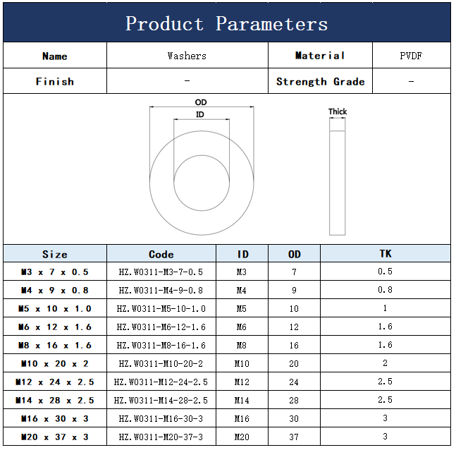 M3-M20 PVDF Washers 分类: General Purpose Washers, Washers Description Product Inquiry NameGeneral Purpose WashersMaterialPVDFSizeM3-M20"" 1 NameEmailProductQuantityYour Message0 / SendPreviousNextShare This Tweet Share Plus one Share 相关产品 M3-M41 304 Stainless Steel Triple-Wave Washers M3-M20 PC Washers M2-M30 Grade 8.8 Alloy Steel General Purpose Washers M3-M10 304 Stainless Steel External-Tooth Lock Washers