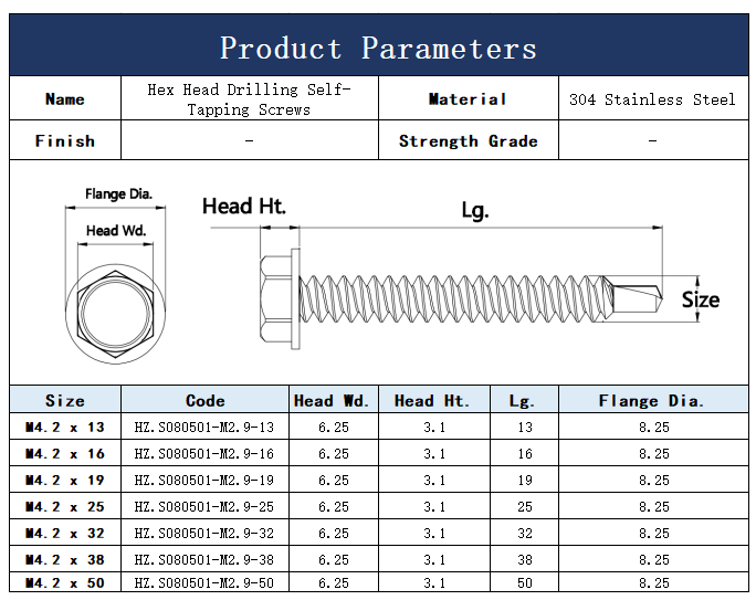 Name Hex Head Drilling Self-Tapping Screws Material 304 Stainless Steel Size M4.2