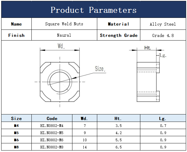 M4-M8 Grade 4.8 Alloy Steel Square Weld Nuts 分类: Square Nuts, Weld Nuts Description Product Inquiry NameSquare Weld NutsMaterialAlloy SteelSizeM4-M8FinishNaturalStrength GradeGrade 4.8"" 1 NameEmailProductQuantityYour Message0 / SendPreviousNextShare This Tweet Share Plus one Share 相关产品 M4-M16 304 Stainless Steel Square Weld Nuts M3-M10 Zinc Plated Square Nuts M3-M8 Grade 12.9 Nickel Plated Square Nuts M4-M10 201 Stainless Steel Square Nuts