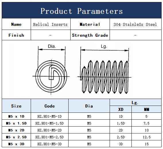Also known as Heli-Coil inserts, these inserts have coils that expand once installed to securely anchor the insert. All have a prong for ease of installation. An installation tool grips the prong and reduces the coil diameter, enabling the insert to fit in tapped holes.Remove the prong to insert the screw. Installation requires a drill bit, a helical insert tap, an installation tool, and a prong break-off tool.