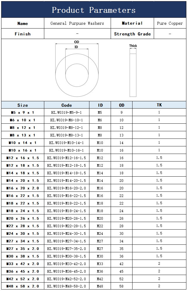 Copper washers are corrosion resistant in wet environments, nonmagnetic, and electrically conductive.