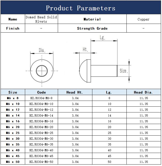 M6 Copper Domed Head Solid RivetsCopper rivets are electrically conductive, nonmagnetic, and have good corrosion resistance. 分类: Domed Head Solid Rivets Description Product Inquiry NameDomed Head Solid RivetsMaterialCopperSizeM6 "" 1 NameEmailProductQuantityYour Message0 / SendPreviousNextShare This Tweet Share Plus one Share 相关产品 M4 Aluminum Domed Head Solid Rivets M2 304 Stainless Steel Domed Head Solid Rivets M4 Copper Domed Head Solid Rivets M8 Copper Domed Head Solid Rivets