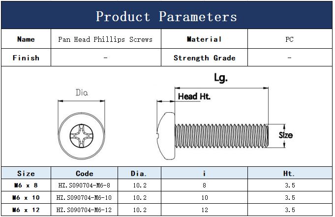 Made from polycarbonate, these pan head screws resist breaking in high-impact applications. They are chemical and oil resistant,nonconductive, and lightweight. Length is measured from under the head.