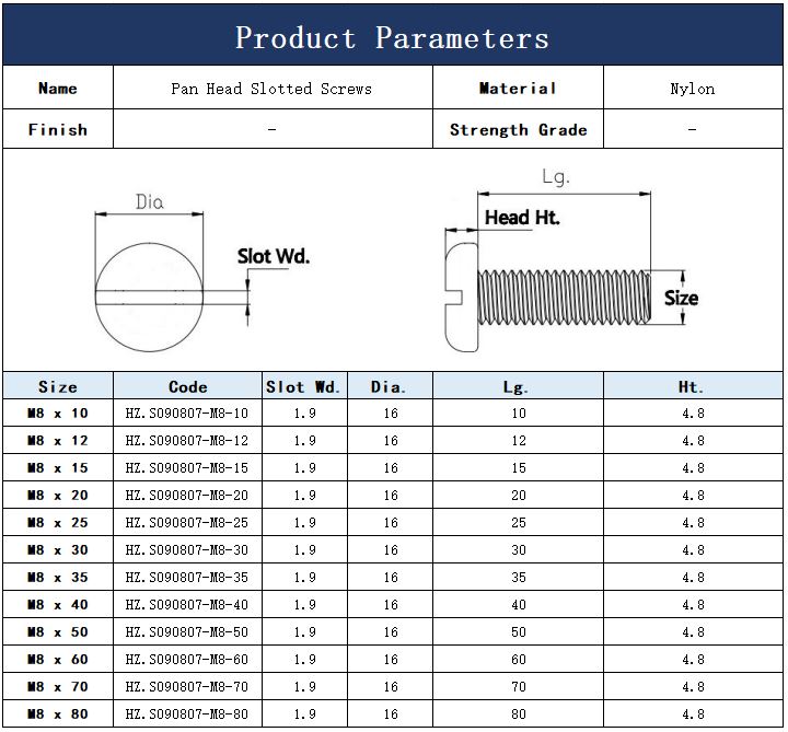 Made from nylon, these screws are chemical and oil resistant, nonconductive, and lightweight. Exposure to moisture may cause them to expand. Length is measured from under the head.
