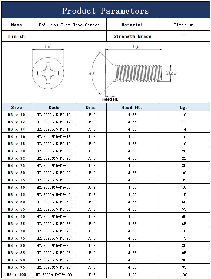 Our most corrosion-resistant screws, titanium screws withstand salt water, acids, and chemicals. These are angled under the head to sit flush within countersunk holes. Length is measured from the top of the head.